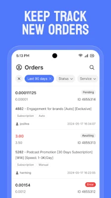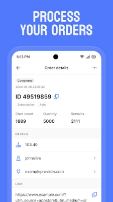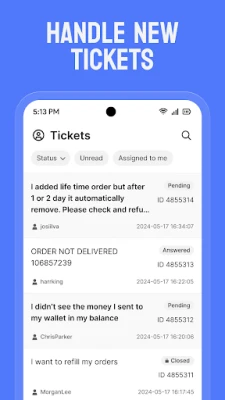 Panel Admin 앱으로 패널을 모바일에서 손쉽게 관리하세요. 결제 추적, 주문 관리, 티켓 처리로 사용자 지원을 가속화하여 서비스 전반을 완벽하게 제어할 수 있습니다. 언제 어디서나 최신 정보를 확인하고 효율적인 운영을 경험하세요.