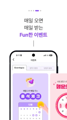 획득한 포인트는 단순한 숫자에 그치지 않습니다. 쌓인 포인트는 언제든지 현금처럼 사용할 수 있는 가치로 전환되어, 실제 생활에 유용하게 활용될 수 있습니다. 뿐만 아니라, 사용자들을 위한 다채로운 경품 이벤트가 정기적으로 열려 참여하는 재미를 더합니다. 최신 가전제품부터 생활에 필요한 다양한 상품권까지, 예측 불가능한 행운의 기회가 여러분을 기다리고 있습니다. 매일 참여할 수 있는 룰렛 이벤트는 작은 행운을 통해 꾸준히 포인트를 적립할 수 있는 또 하나의 즐거운 방법입니다. 지루할 틈 없이 매일 새로운 보상과 즐거움을 선사하며, 사용자들의 일상에 활력을 불어넣습니다.